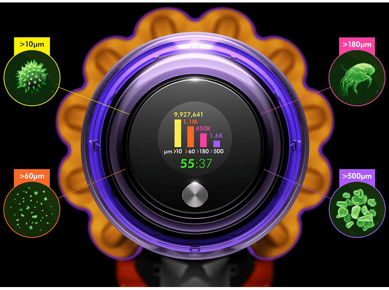 Dyson DLS teknolojisi, Auto modda, saniyede 360 kez silindir fırça direncini takip eder; sert zeminler ve halılarda tozu yakalamak ve çalışma süresini optimize etmek için gücü otomatik olarak ayarlar.