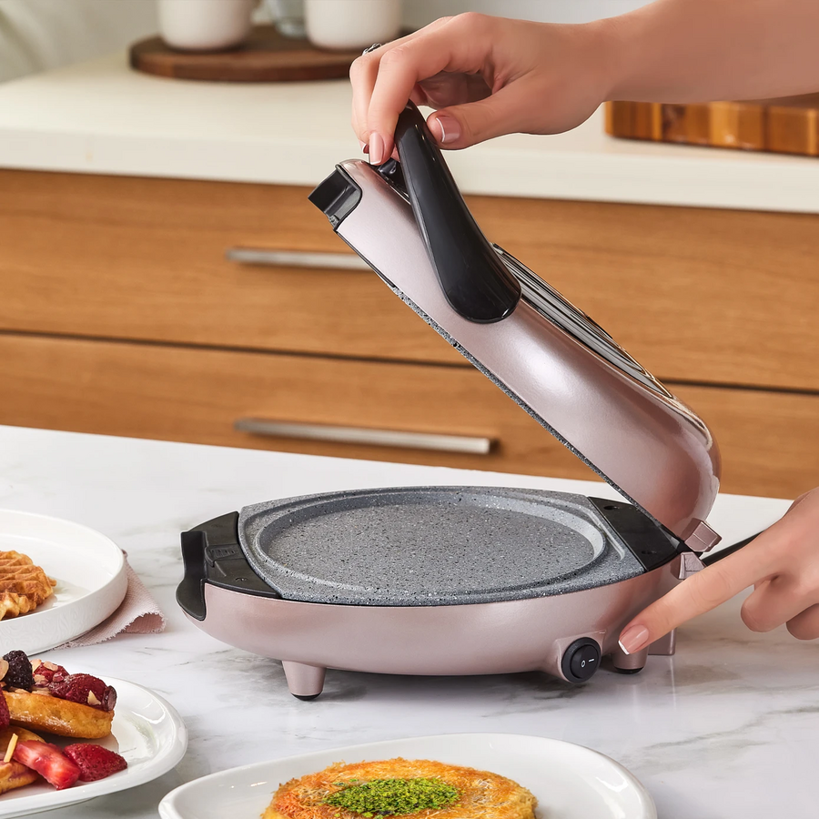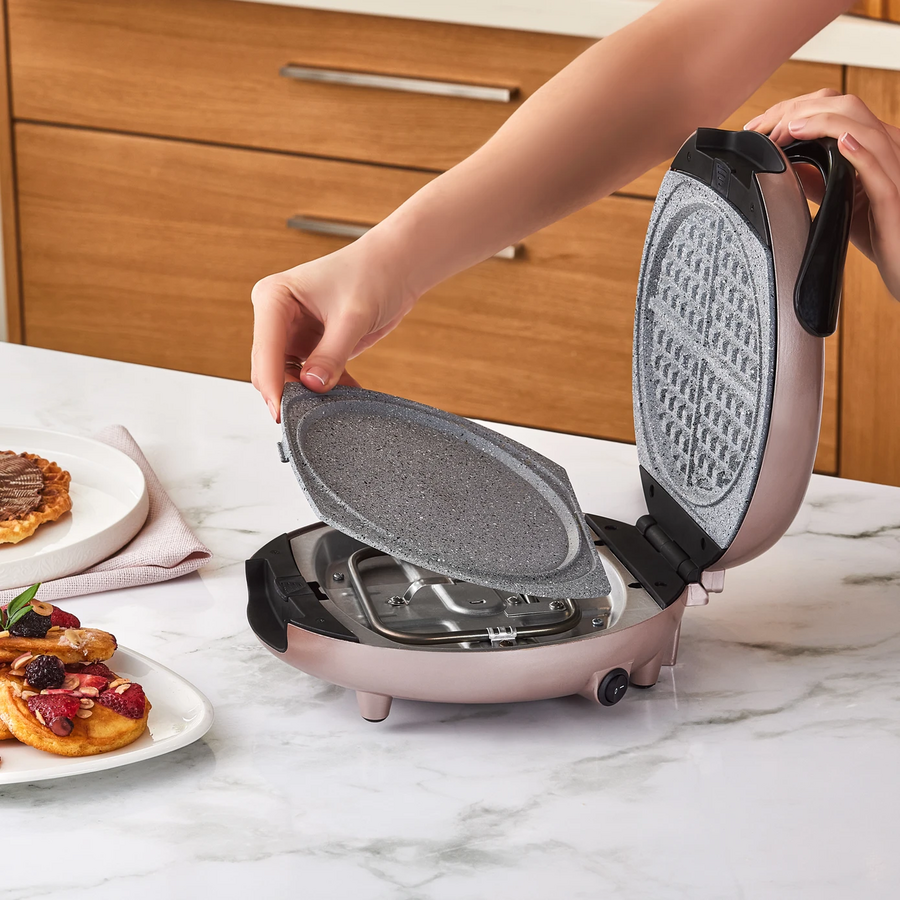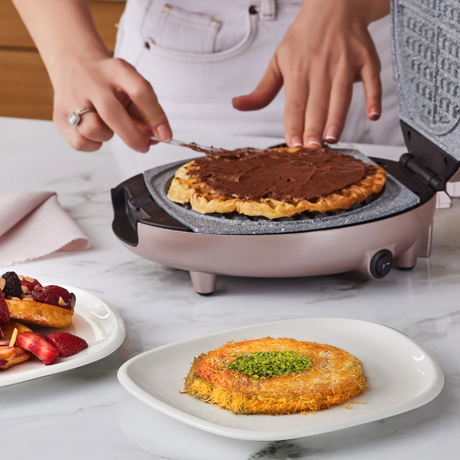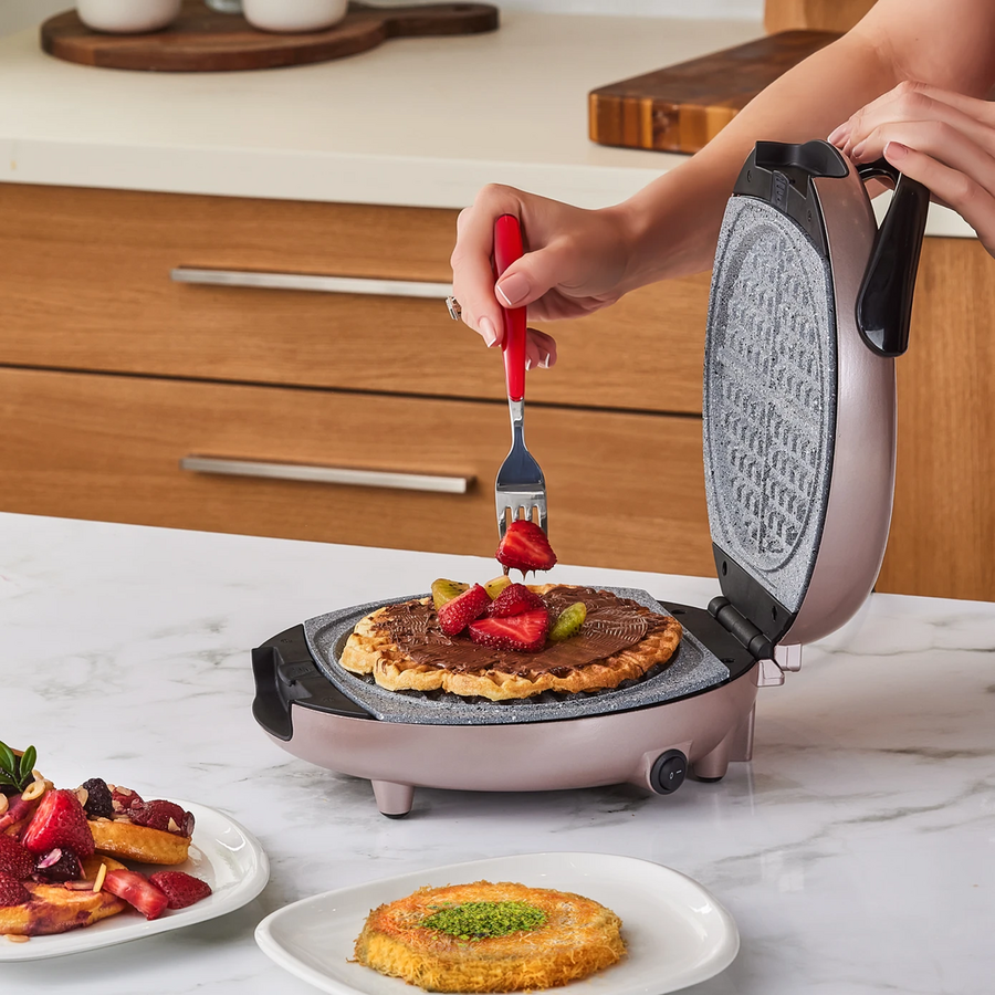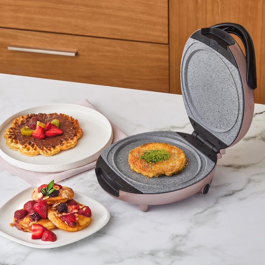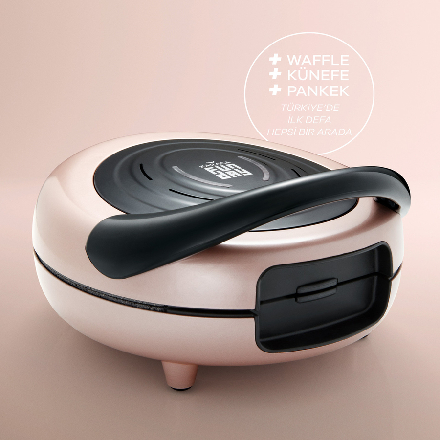 Karaca Funday Çıkarılabilir Plakalı 3’ü 1 Arada Waffle Krep ve Künefe Makinesi Rosegold