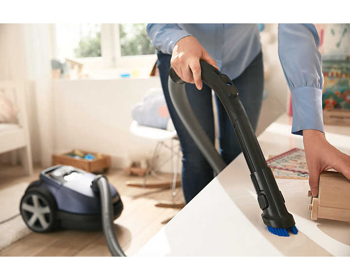 Tutma yerine yerleştirilen toz fırçası aparatı mobilyalarınız, düz yüzeyler ve döşemeler için her zaman kullanıma hazırdır.