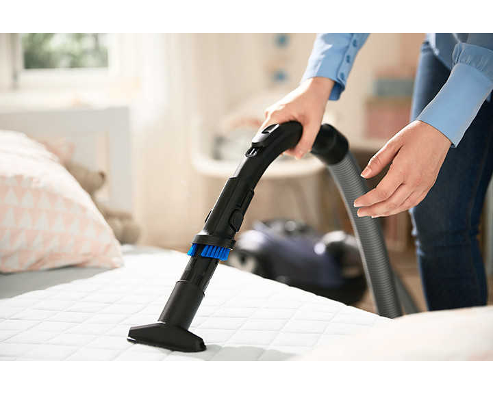 Turbo fırça, halılardaki tüyleri ve kılları kolay bir şekilde alarak derinlemesine temizlik sağlar. Başlığın içindeki döner fırça küçük toz parçacıklarını ve evcil hayvanlarınızın tüylerini etkin bir şekilde çekerek daha iyi bir temizleme performansı sunar. Başlığın tekerlekleri kullanım sırasında sert zeminlerin hasar görmesini engeller.