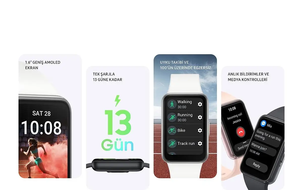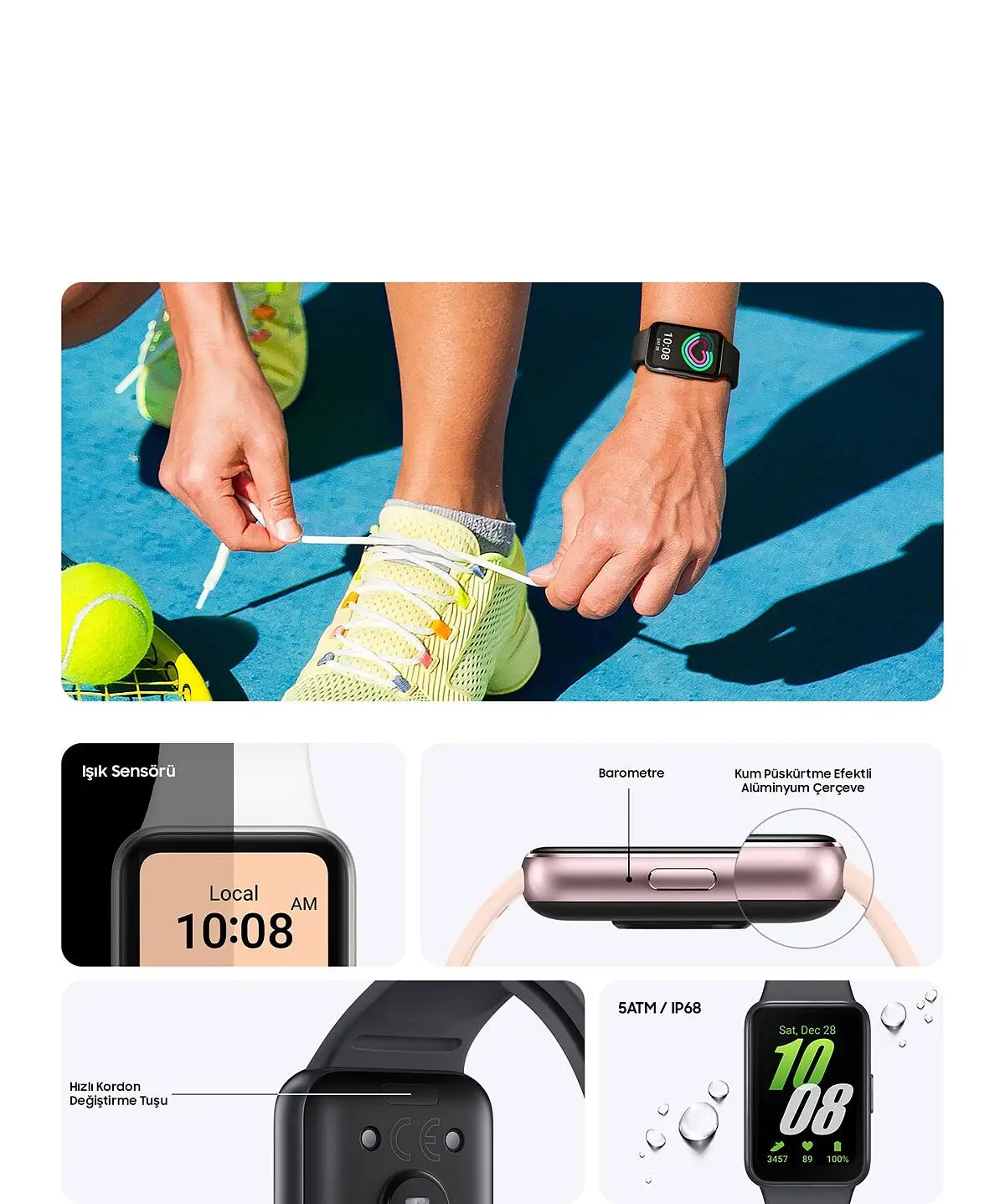 Tek bir şarjla 13 güne kadar dayanabilir. Bileğinizde ağırlık yapmaz ve 100’den fazla antrenmanın yanı sıra uyku gibi günlük aktivitelerinizi takip eder. Doğrudan bileğinizden müzik oynatmanıza, çağrıları kontrol etmenize ve mesaj göndermenize olanak tanır. Galaxy Fit3’ten güç alın, bağlantıda kalın ve hedeflerinize zahmetsizce odaklanın.